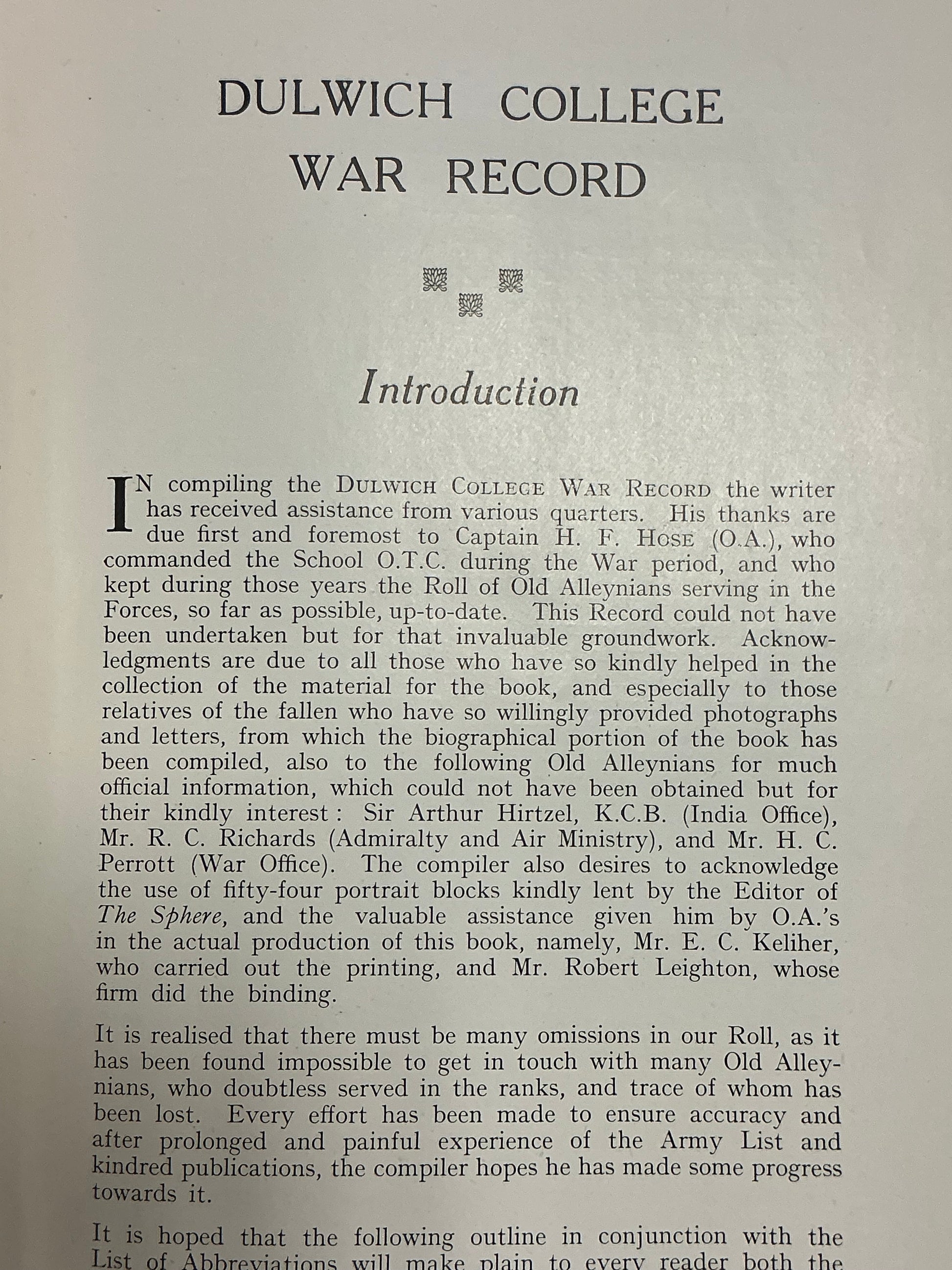 Dulwich College War Record 1914-1919